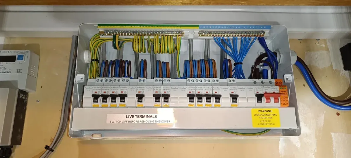 Old fuse boxes often lack the safety features required by today’s electrical standards. A modern consumer unit with RCD/RCBO protection can prevent electrical shocks, reduce fire risk, and ensure your home meets the latest UK regulations.